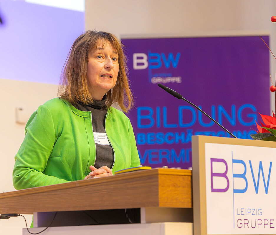 Den inhaltlichen Auftakt bildete das Grußwort von Ute Adolf, Leiterin des Referats „Teilhabe von Menschen mit Behinderungen“ im Sächsischen Staatsministerium für Soziales, Gesundheit und Gesellschaftlichen Zusammenhalt. Sie betonte die Verantwortung des Freistaates Sachsen für eine inklusive Arbeitswelt: