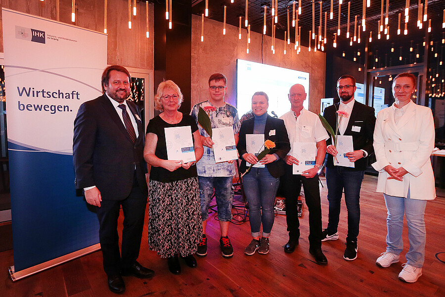 Ebenfalls mit Bestnoten glänzten zwei weitere Auszubildende des Berufsbildungswerks Leipzig aus dem Fachbereich Drucktechnik. Von über 4.000 Absolvent*innen hat ein Auszubildender bei den IHK-Abschlussprüfungen der Prüfungsperiode Winter 2022/ 2023 und Sommer 2023 ein Spitzenergebnis erzielt. Er ist der beste Medientechnologe Druck im gesamten Kammerbezirk Leipzig und wurde am 19.10.2023 von der Industrie- und Handelskammer zu Leipzig als bester Jungfacharbeiter geehrt. Der Auszubildende ist auch noch Landesbester des Bundeslandes Sachsen geworden.